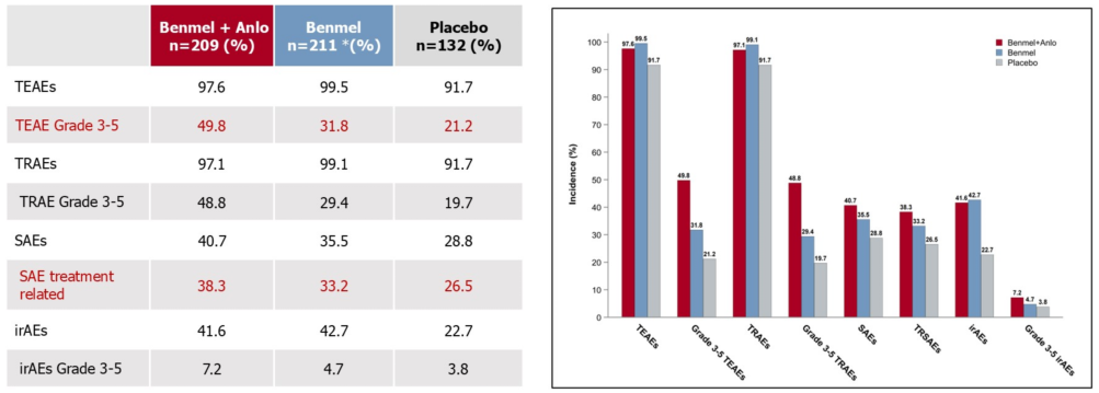 与安慰剂相比,贝莫苏拜单抗联合或不联合安罗替尼治疗均显著延长了患者的PFS。次要终点也显示出优效性,且治疗组的安全性特征仍在可接受范围内。