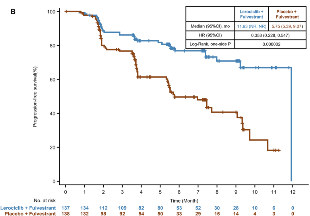 另一项由徐兵河院士牵头的LEONARDA-1研究则入组了既往接受过内分泌治疗后进展的HR+/HER2-乳腺癌患者,共276例,按1:1分组后予以来罗西利+氟维司群vs安慰剂+氟维司群。盲法独立中心评估(BICR)的mPFS为11.93个月vs 5.75个月,HR为0.353,P<0.0001,降低了64.7%的疾病进展或复发风险。来罗西利在HR+/HER2-晚期乳腺癌的一线治疗、二线治疗均展现了较好的HR优势,为患者带来了更多疗效获益,推动乳腺癌治疗水平提升。