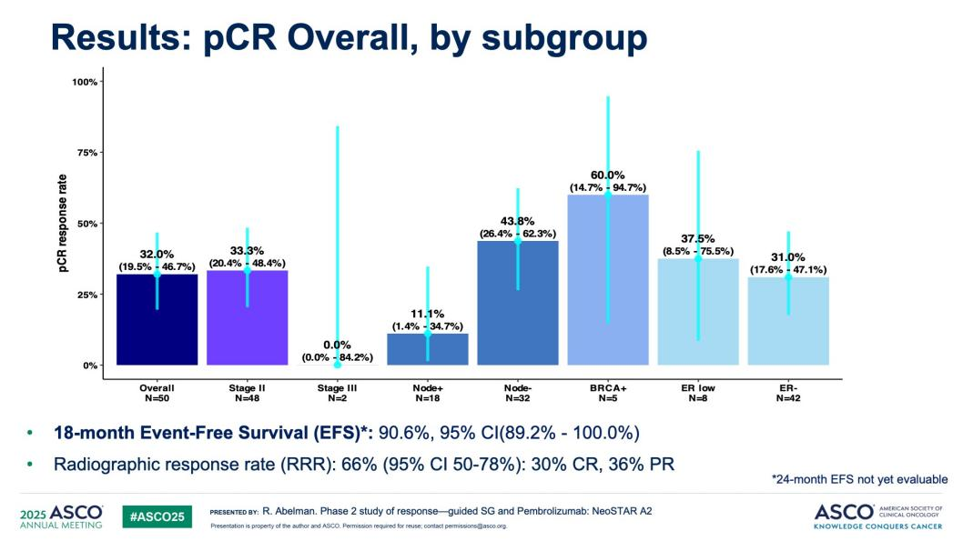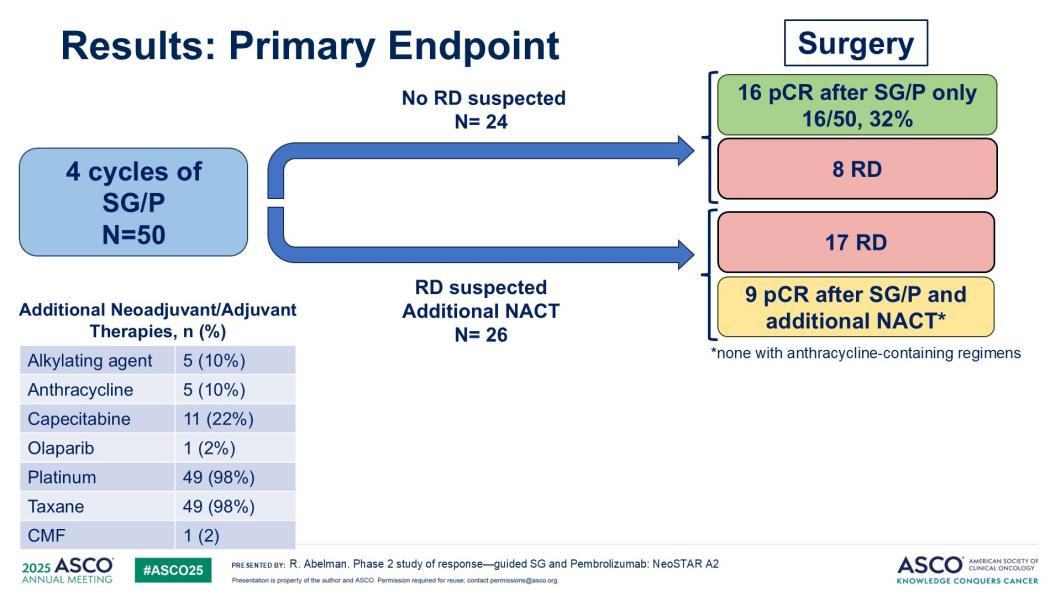 [4]Rachel Abelman,et al.A phase 2 study of response-guided neoadjuvant sacituzumab govitecan and pembrolizumab(SG/P)in patients with early-stage triple-negative breast cancer:Results from the NeoSTAR trial.ASCO 2025;Abstract#511