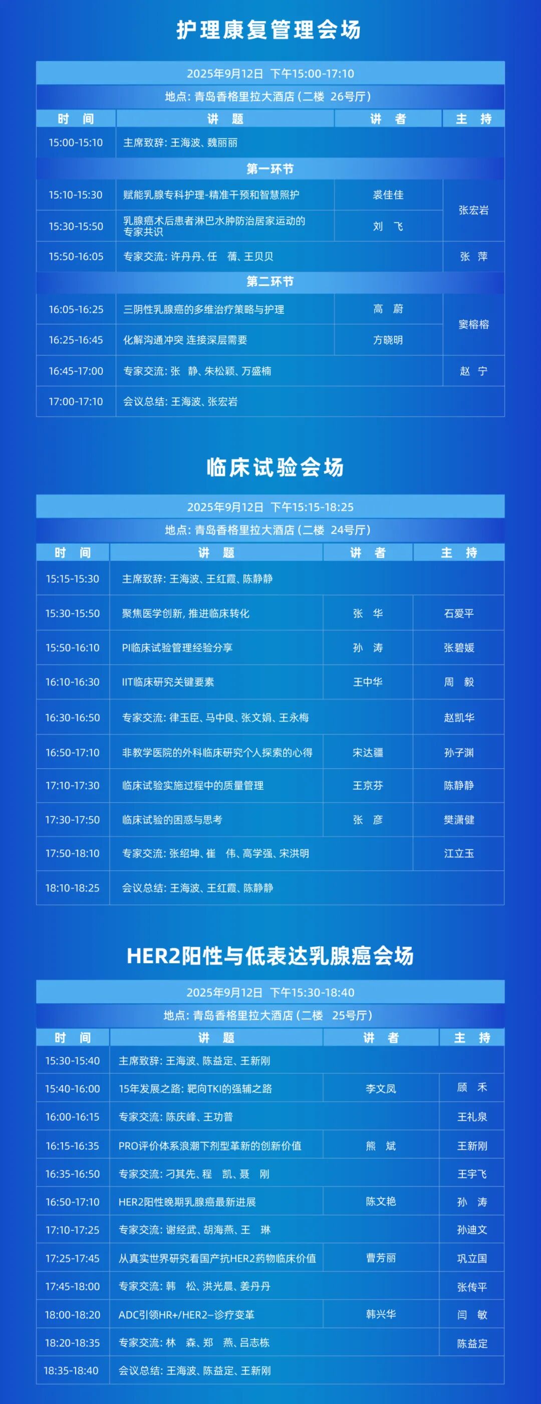 此外,本届大会还特别设置了多个专题会场,包括临床试验会场、HER2阳性与低表达乳腺癌会场、临床转化会场、HR阳性乳腺癌会场、三阴性乳腺癌会场等,旨在加强对中青年医师科研与原创能力的培养。值得一提的是,本届会议与CSCO BC指南巡讲、CBCS&CSOBO主席团巡讲等国内外品牌学术活动联动,进一步拓展了大会的学术辐射力和国际影响力,为乳腺专业同仁搭建了更高水平的交流平台,最终使广大患者受益。