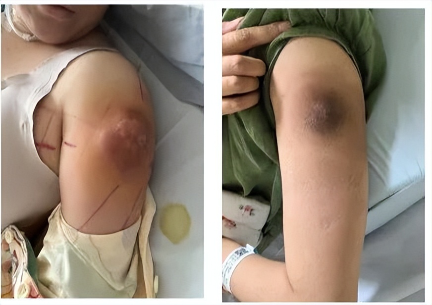 患者左上臂转移灶治疗前后变化图