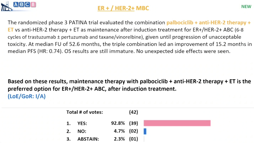 基于PATINA研究推荐CDK4/6i+ET+抗HER2治疗三阳性乳腺癌
