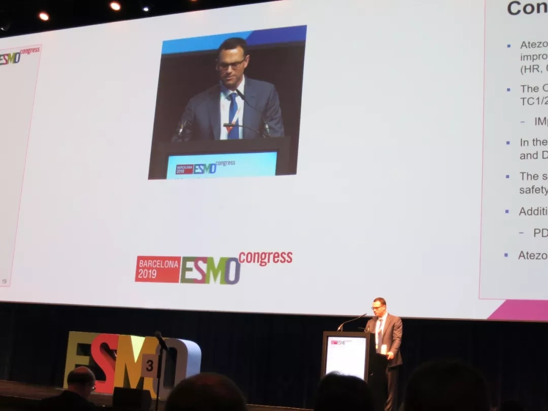2019 ESMO年会发布了多项重磅研究结果,其中,美国纳什维尔Sarah Cannon研究所的David Spigel教授汇报了IMpower 110中期分析结果(LBA78-IMpower110: Interim OS Analysis of a Phase III Study of Atezolizumab vs Platinum-Based Chemotherapy as 1L Treatment in PD-L1–selected NSCLC),这项中期发现发现PD-L1抑制剂阿特珠单抗(Atezolizumab)在晚期非小细胞肺癌(NSCLC)的PD-L1高表达人群相比化疗有显著获益。