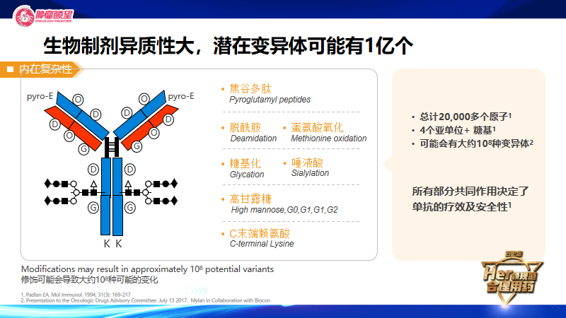 赵晓艾教授在分享中着重强调了免疫原性的问题,免疫原性是某物质应用后触发免疫反应的能力。而克隆抗体的免疫原性非常复杂,并且有大量不明确的因素,原研药在应用多年的过程中就有许多既往RCT研究中未曾遇到的毒副作用,更不用提仅仅作用相同靶点的生物类似物,生物药物免疫原性主要表现在药效学的改变,增强或降低活性物质,一旦超过治疗窗往往会有超敏反应发生。抗体的中和,使得生物活性丧失没有临床疗效,以及毒副作用的加重以及致命并发症。