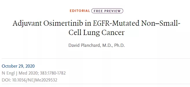 前言:ADAURA研究证实了三代EGFR-TKI药物术后辅助治疗的疗效,研究发表于《新英格兰医学杂志》(NEJM),近期,编辑部发表了来自法国David Planchard教授的评论,看看国外学者如何看待非小细胞肺癌(NSCLC)术后辅助治疗,又是如何看待ADAURA研究。