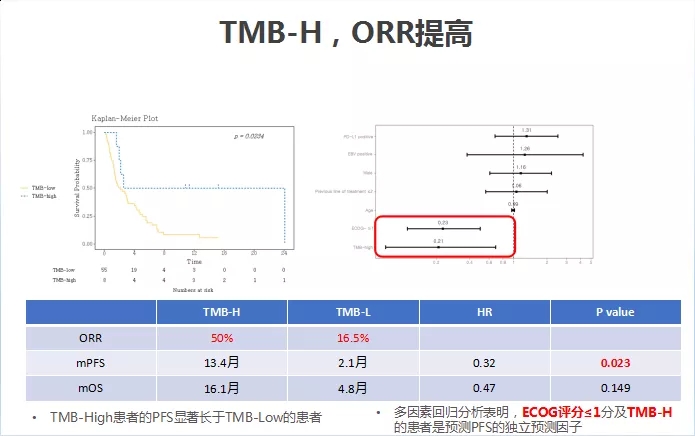 TMB是指基因中发生错误的密码总量,TMB越高则肿瘤相关的致癌突变越多。2019年Nature Genetics杂志上发表的一项大型研究的结果显示,高TMB对多种癌症类型的免疫检查点抑制也存在响应,TMB可以作为潜在的泛癌生物标志物。在胃癌领域中,目前认为高TMB与免疫治疗的ORR存在一定的正相关性,即TMB高,意味着免疫治疗带来的ORR更佳。