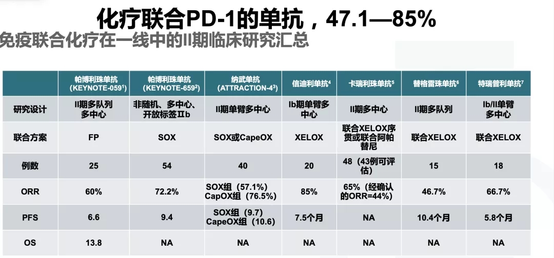 1. HER2阴性胃癌——化疗联合免疫治疗,ORR较高
