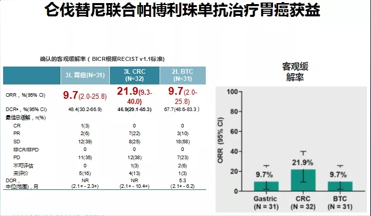REGONIVO研究证实,瑞戈非尼联合纳武利尤单抗在胃癌后线治疗中的ORR为44%,但是后续的其他研究中ORR却并不那么高。2020年ESMO会议上Lwin Z教授等开展的研究表明,仑伐替尼联合帕博利珠单抗的双免疫方案在晚期胃癌中获益明显,但ORR有限。