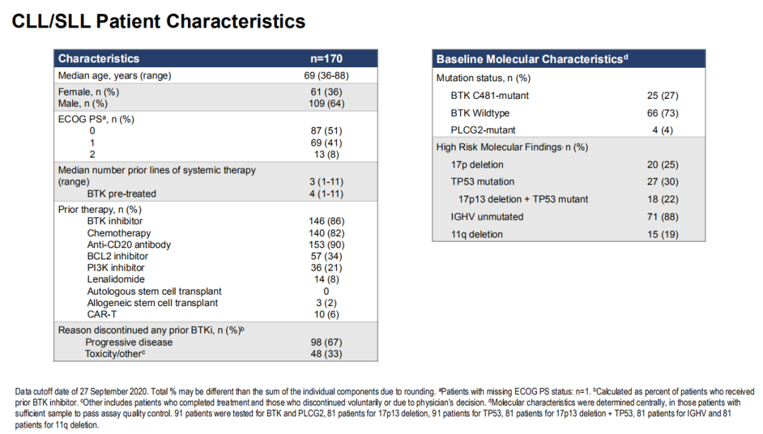 一、#542.BRUIN研究:LOXO-305,新一代、高选择性、非共价BTK抑制剂用于治疗经治的CLL/SLL患者的I/II期研究