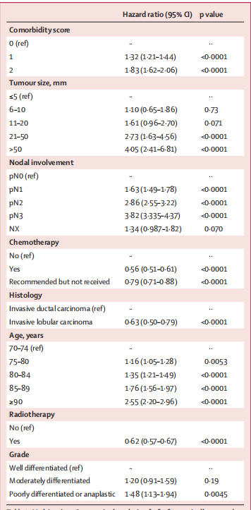 总之,该研究数据支持年龄≥70岁的早期三阴性乳腺癌妇女,无论淋巴结状态或合并症评分如何,都应该考虑化疗。