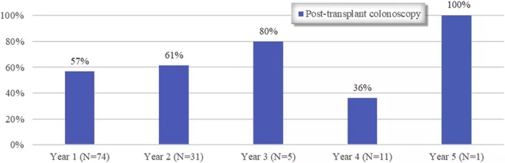 研究人员回顾了2013年1月至2017年8月在其机构接受肺移植的所有患者,排徐移植后生存不到1年的患者,以及有CRC病史、既往肺移植、移植前缺乏结肠镜检查的患者。