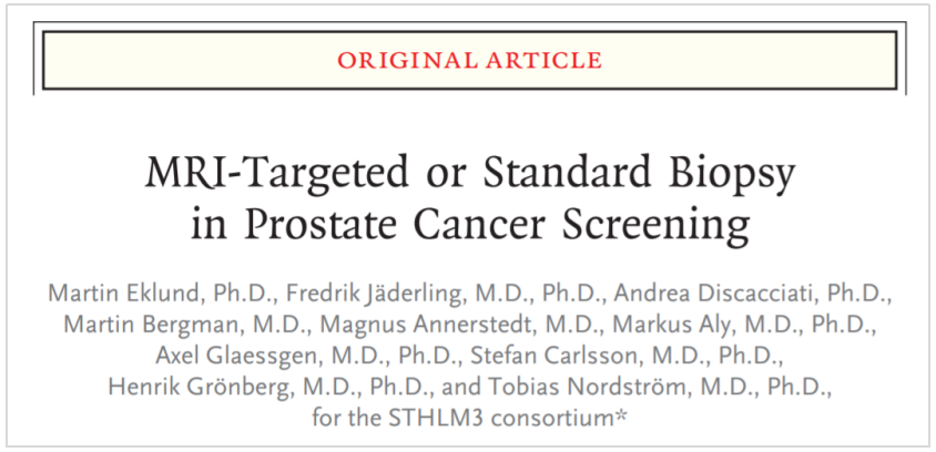1.Eklund M, Jäderling F, Discacciati A, et al. MRI-Targeted or Standard Biopsy in Prostate Cancer Screening [published online ahead of print, 2021 Jul 9]. N Engl J Med. 2021;10.1056/NEJMoa2100852. doi:10.1056/NEJMoa2100852