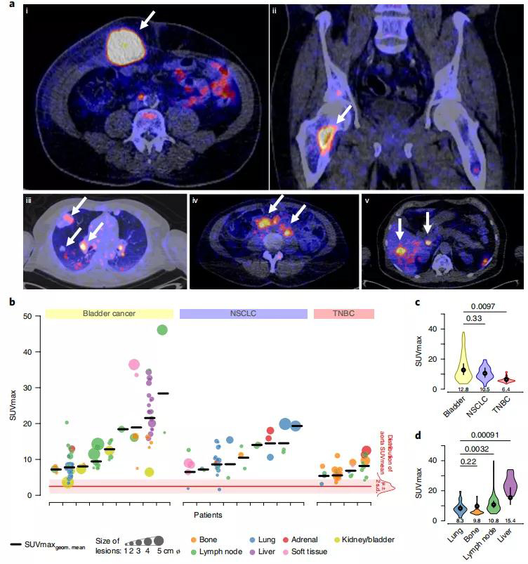 该研究共入组了25名局部晚期或转移性膀胱癌、NSCLC或三阴性乳腺癌(TNBC)患者。22名患者完成了4次PET扫描,随后接受atezolizumab治疗直到病情进展(PD)。