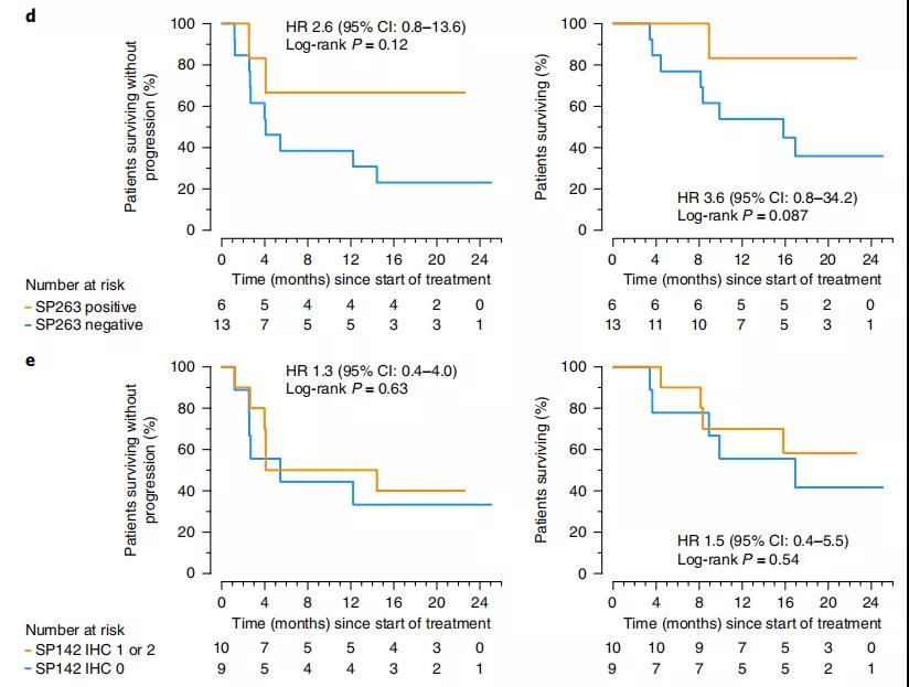 SP263和SP142 IHC阳性或阴性患者的生存曲线