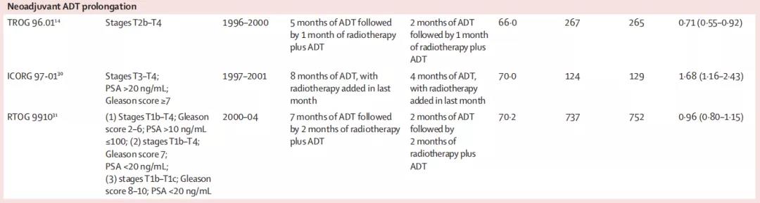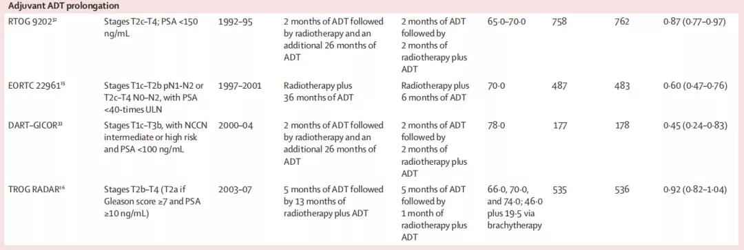 量化这些干预措施的获益,并评估其是否受到放疗剂量、年龄或NCCN风险组的影响,为患者提供循证护理至关重要。为了满足这一临床需求,2020年成立了前列腺癌随机试验荟萃分析(MARCAP)联合会,作为国际试验组的数据存储库。MARCAP研究的旨在量化局限性前列腺癌患者的三个临床相关问题:放疗联合ADT的肿瘤学效应、放疗前新辅助ADT延长的效应以及放疗完成后辅助ADT延长的效应。