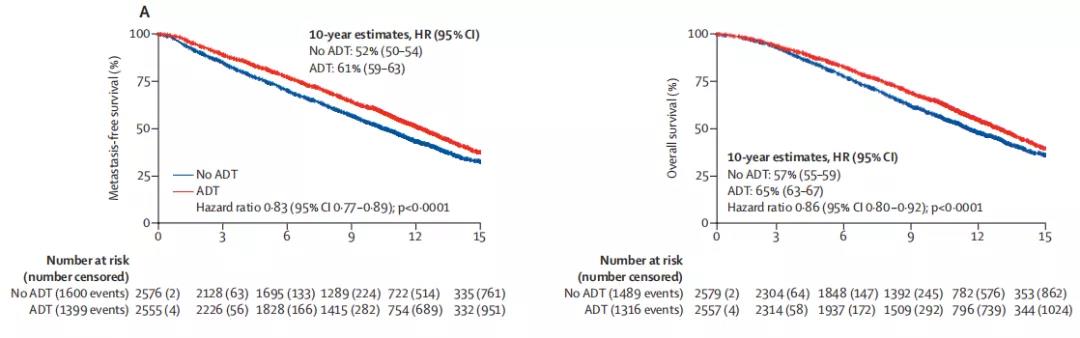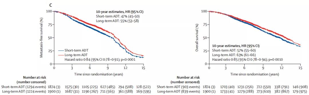 放疗后延长ADT辅助治疗同样可以降低16%的转移复发风险(HR 0.84 ,P<0.0001)。