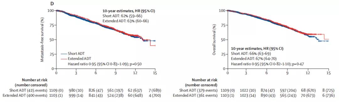 放疗前延长ADT新辅助治疗并不能增加MFS获益(HR 0.95,P = 0.50)。