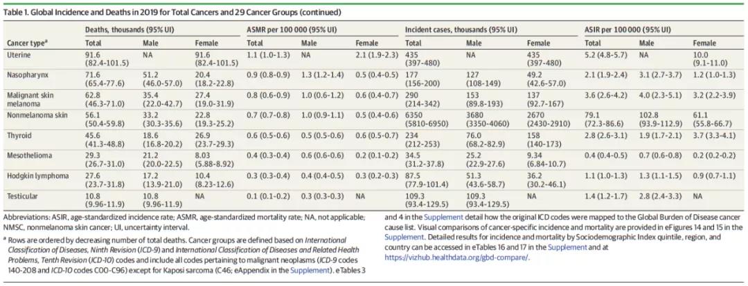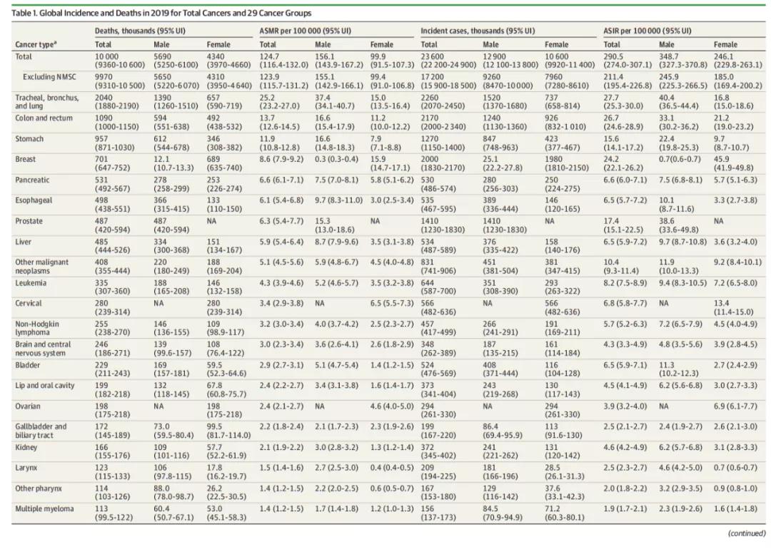 JAMA Oncol丨2010年~2019年世界范围内癌症负担变化