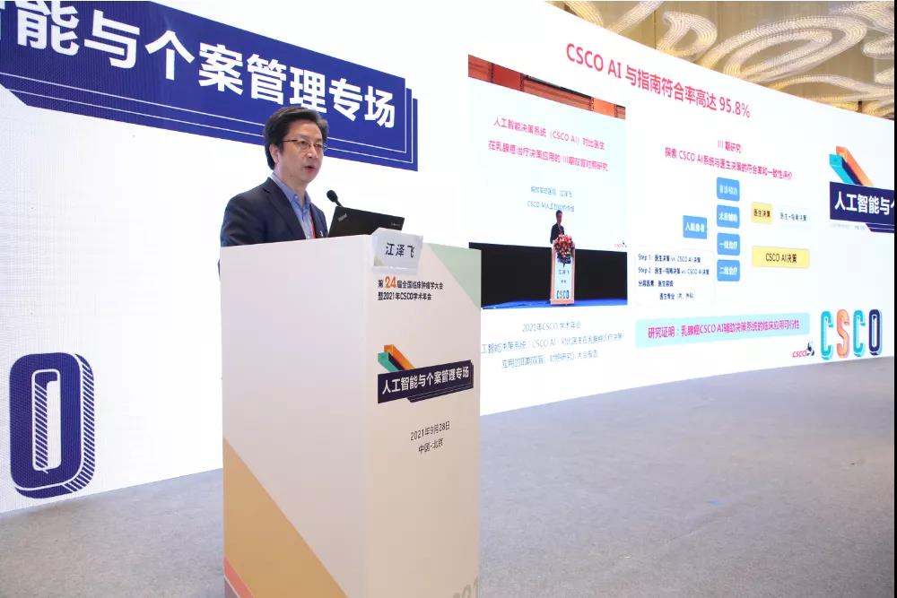 在乳腺癌的规范化诊疗推进方面,我们开发的CSCO AI是一款结合中国实践经验、中国大数据的智能决策系统,目前已经开始进入临床使用阶段。我本人也非常有幸能够代表团队在2021年CSCO大会上报告了CSCO AI的Ⅲ期试验结果,该智能决策系统与中国肿瘤指南的符合率高达95.8%。与此同时,CSCO AI又开启了个案管理,并且在湖北、广东、浙江、山东、山西等地落地实施,希望能够惠及更多患者。