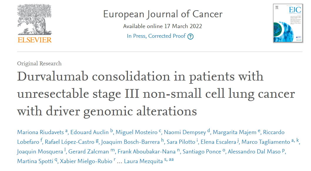 随后,又有两个真实世界中的研究数据发现,对于携带可靶向治疗的突变类型患者而言,接受durvalumab的维持治疗似乎并不能给患者带来获益。两项研究均发表于JTO杂志。
