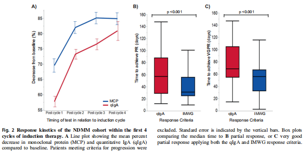 在MM患者治疗反应评估中的比较:IMWG标准(即MCP)与qIgA标准