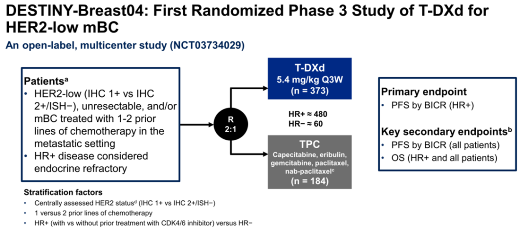 主要研究终点:HR+乳腺癌mPFS,T-DXd显著优于对照组,10.1 vs 5.4个月。