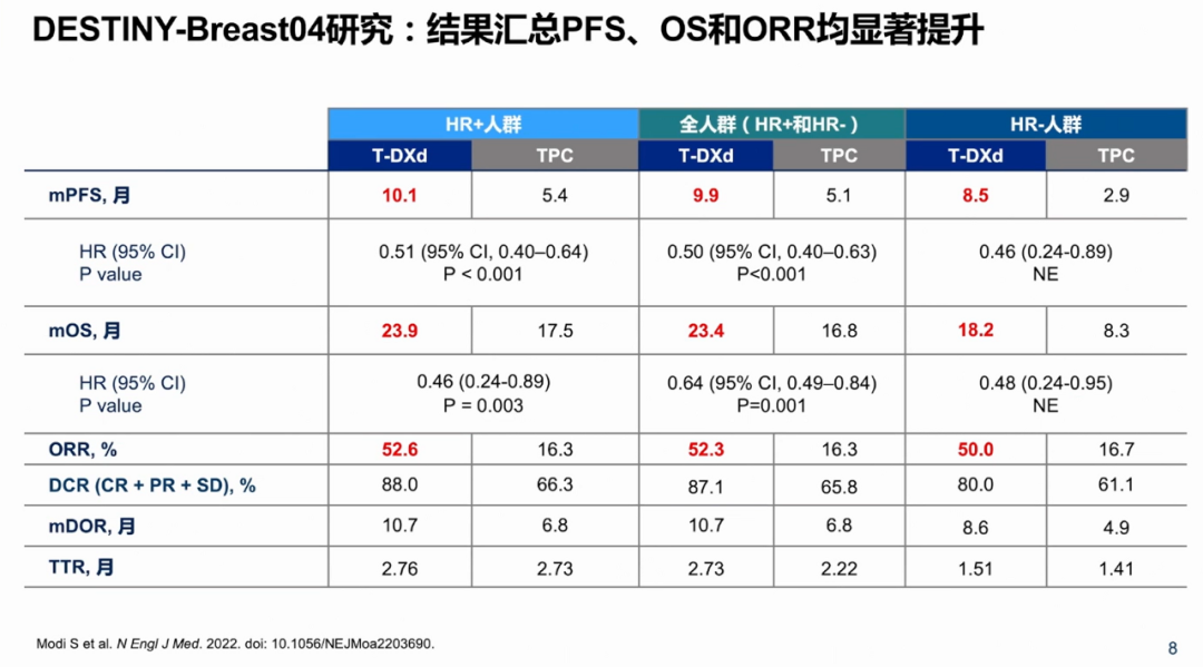 具有里程碑意义的DESTINY-Breast04研究已证实,新型抗体偶联药物(ADC)T-DXd用于HER2低表达晚期乳腺癌二线/后线治疗,可显著改善患者PFS和OS,引起了学术界对乳腺癌临床实践变革的大讨论。