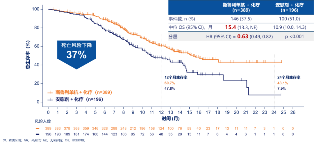 肺癌是我国排名首位的恶性肿瘤,其中小细胞肺癌(SCLC)约占20%1。SCLC是一种对放化疗敏感,但侵袭性强、预后差的恶性肿瘤,其经典治疗模式是多学科联合的综合治疗。长期以来,EP方案一直是SCLC一线治疗标准方案,患者获益有限,5年生存率不足2%2。中国人口基数大,因此SCLC患者数量也较庞大,疾病负担沉重。近些年来,免疫治疗药物的出现使得小细胞肺癌的治疗有了新的契机,IMpower133、CASPIAN等临床试验证实PD-L1在SCLC一线治疗的有效性及安全性,因此FDA批准PD-L1抑制剂阿替利珠单抗和度伐利尤单抗联合化疗用于广泛期SCLC的一线治疗,并被NCCN、CSCO指南作为一线治疗1级推荐。但美中不足的是,IMpower133临床研究中Atezolizumab+化疗联合治疗仅延长2个月的mOS,CASPIAN临床研究中Durvalumab+化疗联合治疗同样仅延长2.7个月的mOS,临床获益有限,因此迫切需要新的免疫抑制剂改变此局面。
