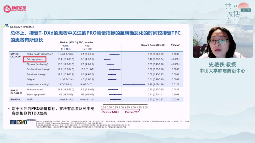 朱丽教授:DESTINY-Breast04研究PRO数据的第一印象如何?T-DXd和TPC两组PRO数据在临床意义上的区别是什么?
