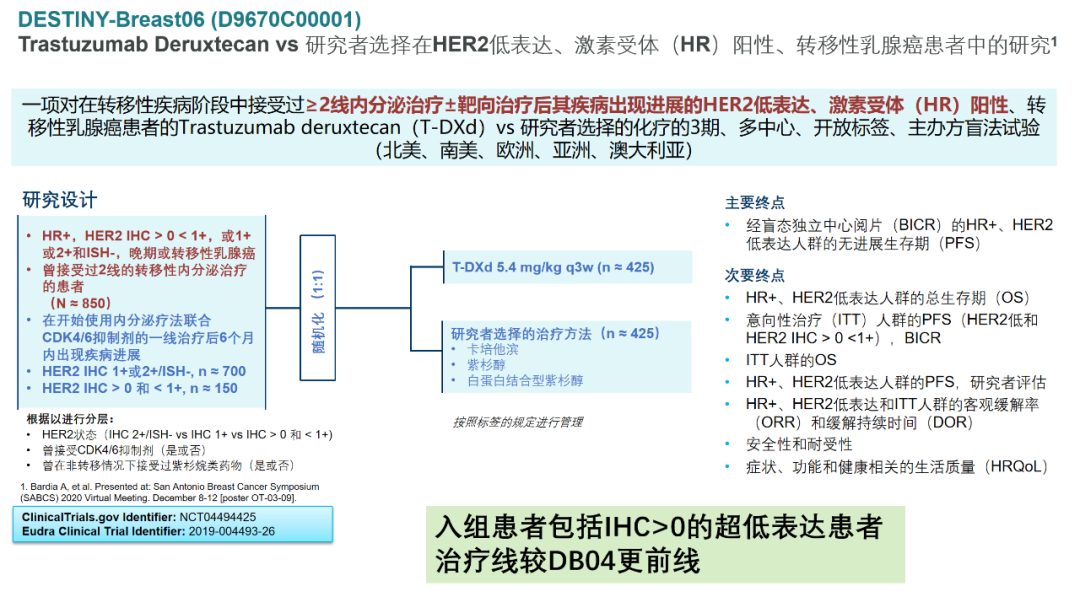 DESTINY-Breast06:T-DXd扩大围猎HER2超低表达,继续前移治疗线序