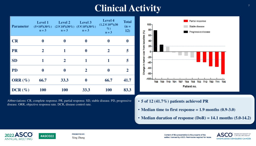 [10]Qing Xu,et al.Phase I clinical safety and preliminary efficacy of PD-1-mesoCAR-T cells in the treatment of malignant pleural/peritoneal mesothelioma.ASCO 2022,abstr 8559