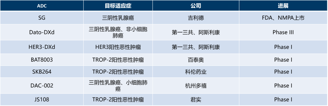 表3.靶向TROP2或HER3的ADC汇总