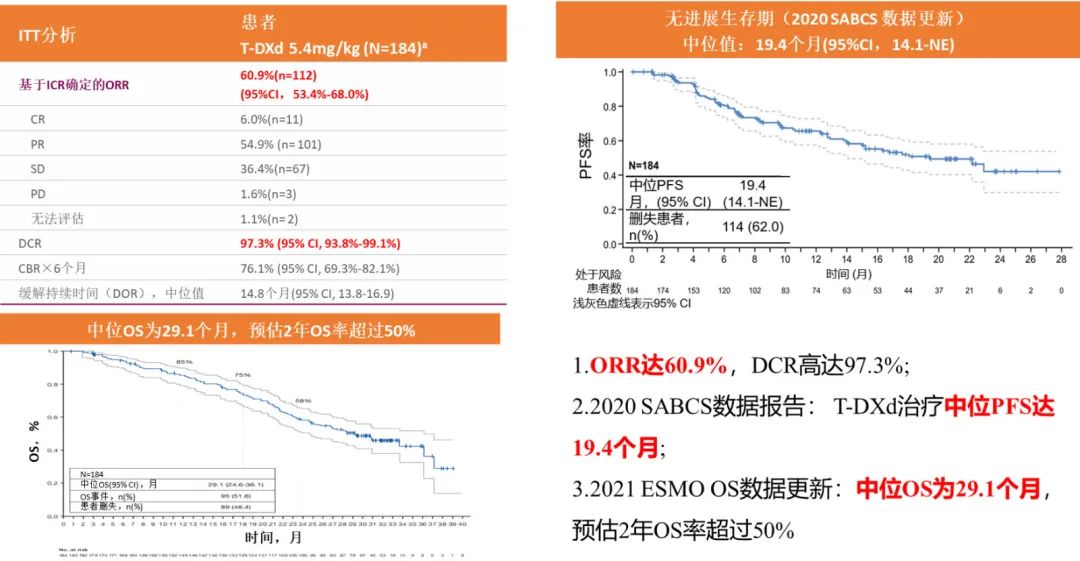 图5.DESTINY-Breast01研究:ORR、PFS及OS分析。