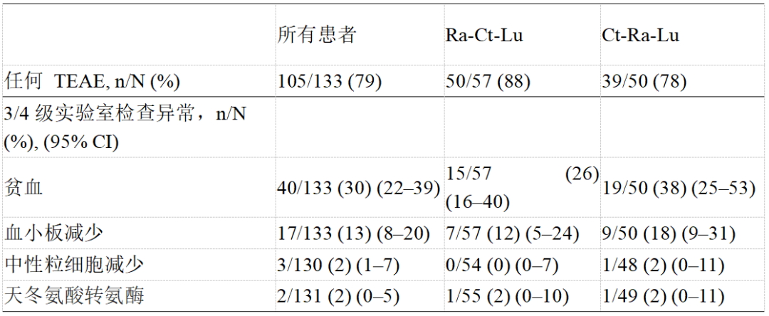 表3.所有人群、Ra-Ct-Lu组和Ct-Ra-Lu组的安全性事件汇总