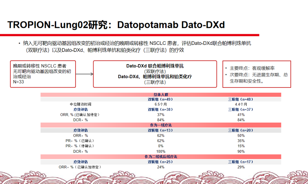 [16]B.Levy,K.Leventakos,Y.et al.TROPION-Lung02:Datopotamab Deruxtecan(Dato-DXd)Plus Pembrolizumab and Platinum-Based Chemotherapy in Advanced NSCLC.2021 WCLC;P47.04