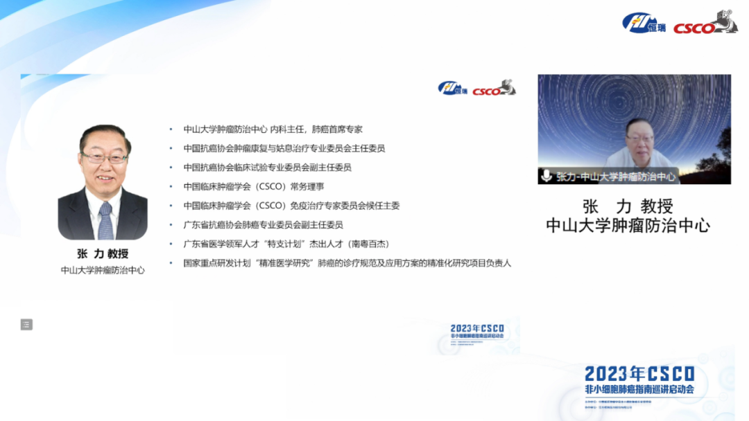 2023年5月24日,由中国临床肿瘤学会(CSCO)非小细胞肺癌专家委员会主办、江苏恒瑞医药协办的“2023年CSCO非小细胞肺癌指南巡讲启动会”成功举办,开启了2023年中国非小细胞肺癌(NSCLC)领域规范化诊疗的新征程。弦歌不辍,随着业内专家的巡讲之声,《2023CSCO非小细胞肺癌诊疗指南》(以下简称2023CSCO指南)的一系列重要更新及其背后的循证医学依据将深入到不同层级的医疗机构,帮助广大患者获得规范化、同质化的诊疗服务和最大化的生存获益。