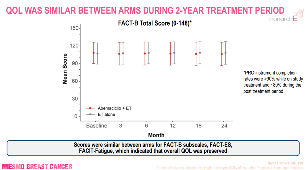 1.N.Harbeck,V.Guarneri,J.H.Seo,et al.93MO Long-term patient-reported outcomes from monarchE:abemaciclib plus endocrine therapy for adjuvant HR+,HER2-,node-positive,high-risk,early breast cancer(EBC).ABSTRACT BOOK of the ESMO Breast Cancer,93MO.2023;8(1S4):1.