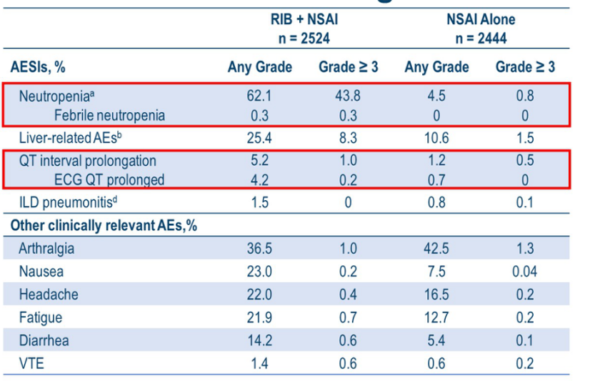 The NATALEE trials show there were no new adverse events from ribociclib.In fact,there was a decrease in the adverse events that we saw in the breast cancer setting.That’s likely due to the fact that we decrease the dose from 600 milligrams to 400 milligrams.Now,knowing that we have seen that it still has this improvement in invasive disease free survival(IDFS)and in metastatic disease,both of which were statistically significant.We are still waiting for maturation of data on overall survival.But the intent is to really decrease the recurrence as that happened in these hormone receptor positive,HER2 negative patients.