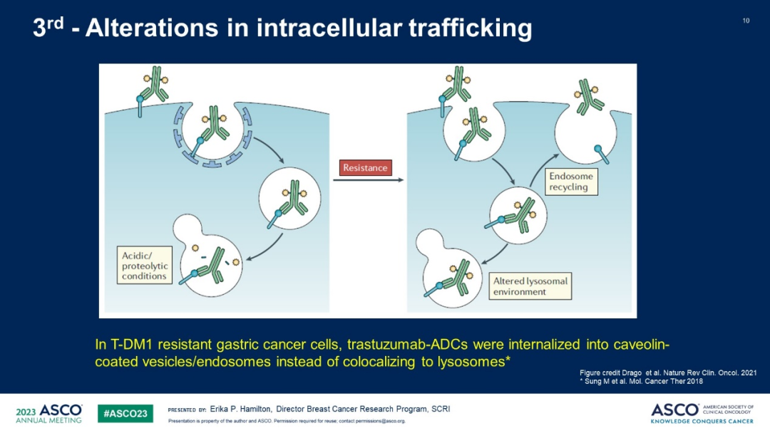 2023年ASCO的一篇口头报告详细分析了ADC的耐药机制,并归纳了ADC耐药的临床应对策略,为ADC后治疗策略指引了方向[1]。该报告中,研究者认为ADC的主要耐药机制主要有以下三点。