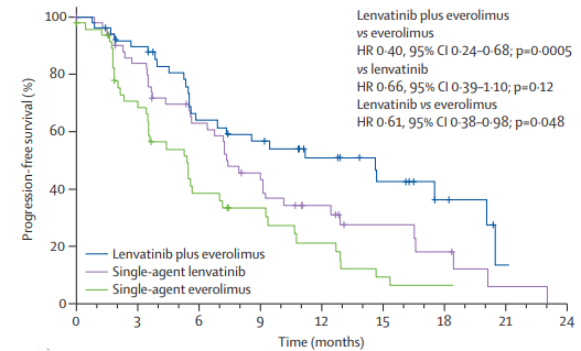 [2].Motzer R J,Hutson T E,Glen H,et al.Lenvatinib,everolimus,and the combination in patients with metastatic renal cell carcinoma:a randomised,phase 2,open-label,multicentre trial[J].The lancet oncology,2015,16(15):1473-1482.