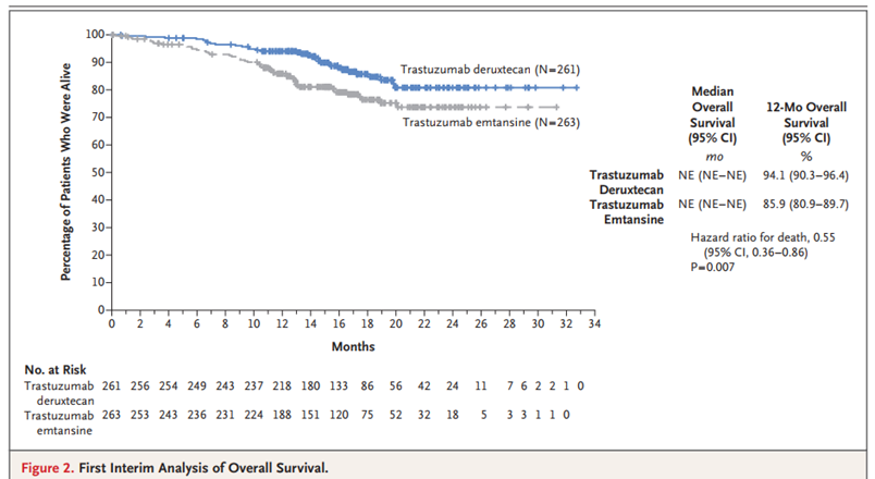 不仅如此,T-DXd对HER2低表达乳腺癌同样有效,DESTINY-Breast04(DB-04)研究入组了HER2低表达的乳腺癌患者,即免疫组化为HER2(1+)和HER2(2+)且FISH(-)。结果显示,相较于其他医生选择的常规治疗,HER2低表达患者仍然可以从T-DXd中得到生存获益,其PFS及OS都显著延长。中国的乳腺癌患者半数以上为HER2低表达,在DB-04研究结果公布之前,HER2低表达人群的用药仅有化疗,HR+乳腺癌可接受内分泌治疗,而T-DXd为HR+/HER2低表达患者带来了新的有效治疗选择。