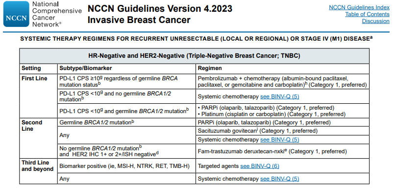 图2 NCCN指南TNBC治疗建议