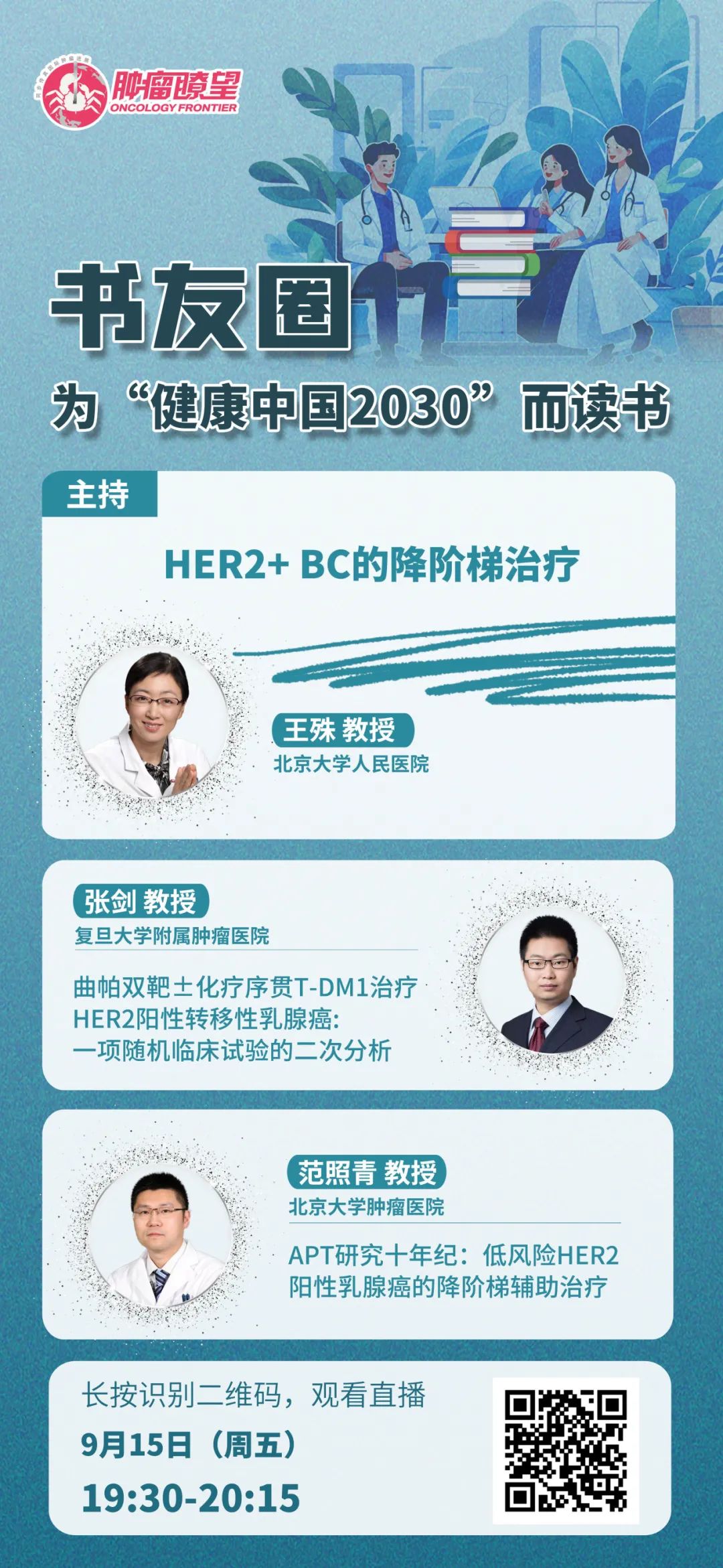 书友圈丨9月15日19:30,王殊、张剑、范照青共话HER2+ BC的降阶梯治疗