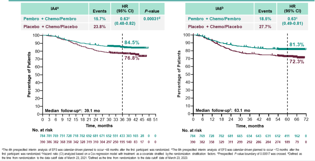 4、Cardoso F,et al.KEYNOTE-756:Phase 3 study of neoadjuvant pembrolizumab(pembro)or placebo(pbo)+chemotherapy(chemo),followed by adjuvant pembro or pbo+endocrine therapy(ET)for early-stage high-risk ER+/HER2–breast cancer.ESMO Congress 2023,LBA21