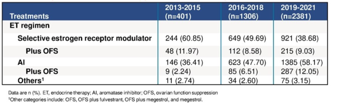 表3.2013年-2021年HR+/HER2-早期乳腺癌患者辅助内分泌治疗