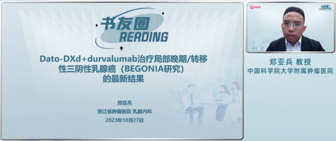 郑亚兵教授:Dato-DXd+durvalumab治疗局部晚期/转移性三阴性乳腺癌(BEGONIA研究)的最新结果