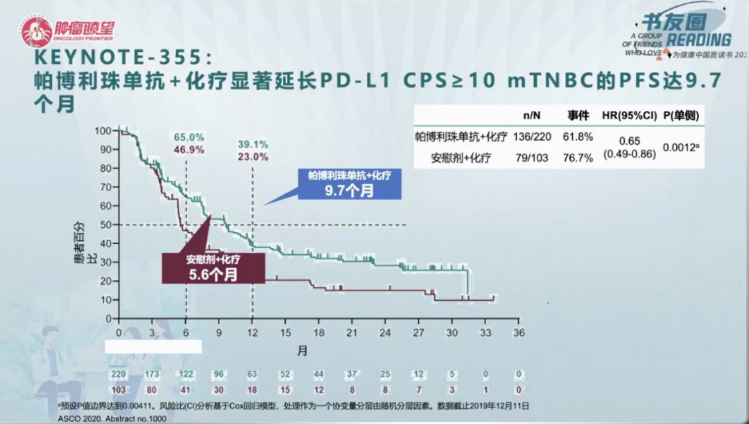 除靶向Trop-2的ADC外,免疫治疗在TNBC中也有很好的治疗效果。KEYNOTE-355研究结果显示,帕博利珠单抗+化疗作为一线治疗,能使PD-L1 CPS≥10 mTNBC患者的PFS达9.7个月,但在ITT人群中及PD-L1 CPS≥1的人群中,患者的PFS未能得到改善。