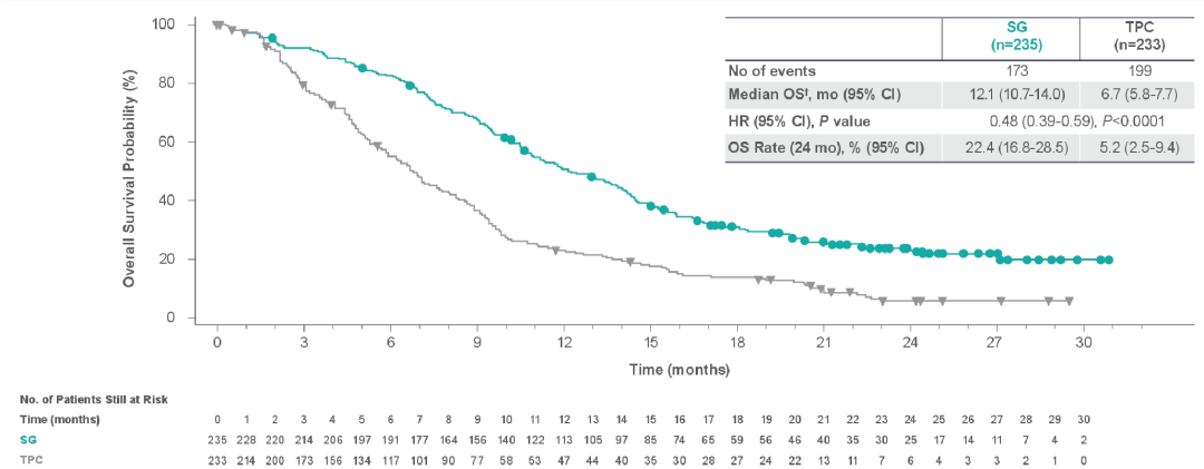[7]Aditya Bardia,et al.Sacituzumab govitecan(SG)versus treatment of physician’s choice(TPC)in patients(pts)with previously treated,metastatic triple-negative breast cancer(mTNBC):Final results from the phase 3 ASCENT study.J Clin Oncol 40,2022(suppl 16;abstr 1071).DOI:10.1200/JCO.2022.40.16_suppl.1071
