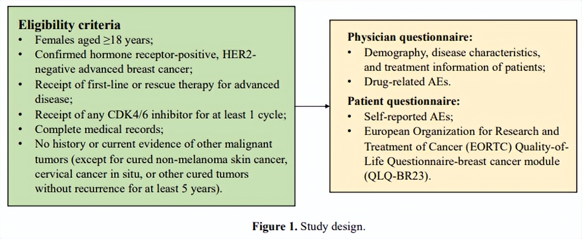 该研究是一项大型横断面研究,使用问卷调查形式,对中国10个研究中心HR阳性HER2阴性且接受至少1个周期的CDK4/6抑制剂治疗的晚期乳腺癌患者及其主管医师进行调研。