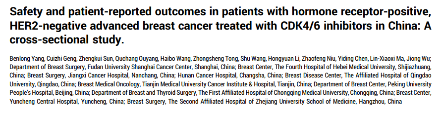 以人为本,践行PRO:CDK4/6抑制剂治疗HR+HER2-晚期乳腺癌中国患者报告亮相ASCO